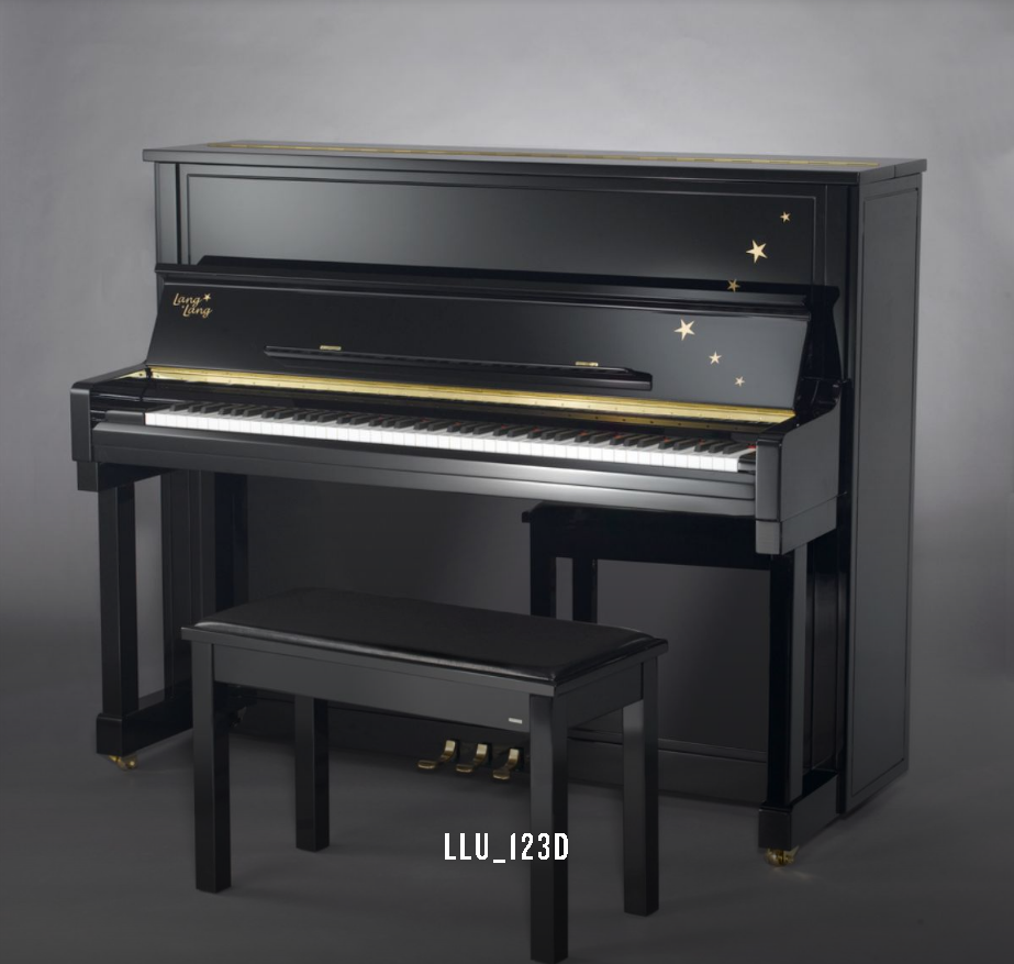飾面采用黑檀木拋光制作而成的LLU-123C郎朗系列立式鋼琴的特別之處在于優(yōu)美的鋼琴琴體線條設(shè)計和皇室風(fēng)格的直角設(shè)計,以及與之相匹配的琴飾、琴腿和后折疊頂蓋。