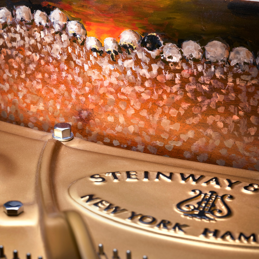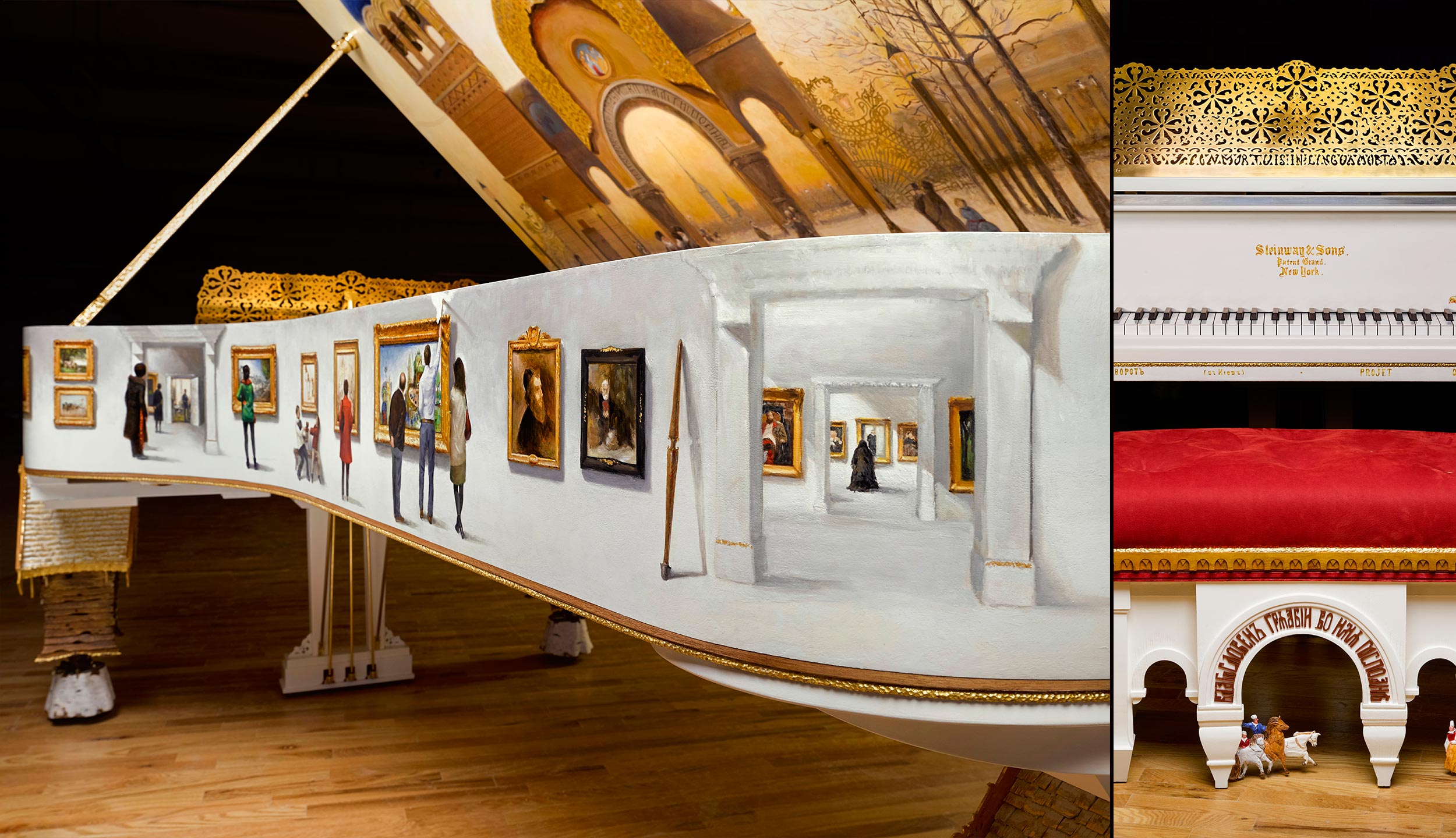在保羅的構(gòu)思和創(chuàng)作下,這架施坦威D型號三角鋼琴生動地再現(xiàn)出1874年由穆索爾斯基創(chuàng)作的、層次豐富且錯綜交織的鋼琴組曲《圖畫展覽會》,造就了這架集視覺藝術(shù)、俄羅斯歷史與與精湛手工藝的驚人杰作。保羅精心設(shè)計(jì)了每一個細(xì)節(jié),令人駐足觀賞,流連忘返,贊不絕口。