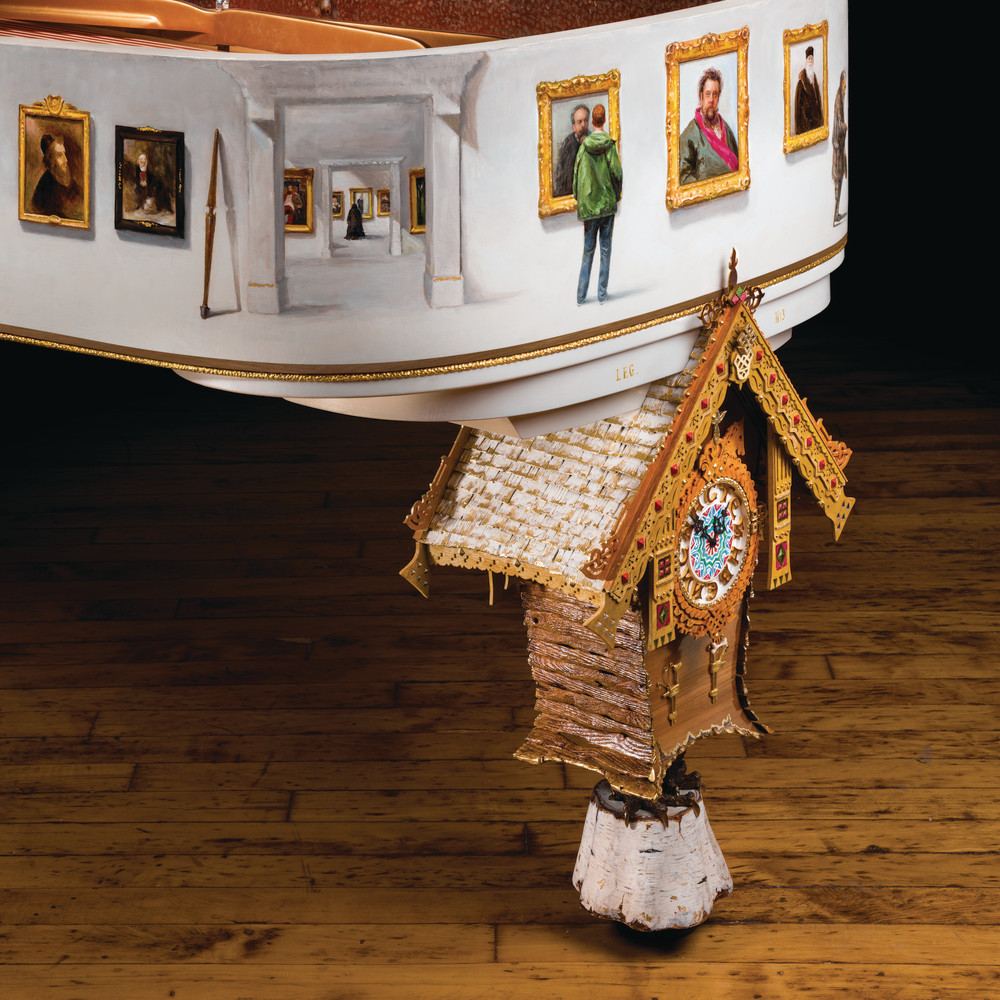 2012年,作為古典鋼琴家和多有建樹的肖像畫家,馳名世界的保羅受施坦威公司的邀請定制一臺藝術(shù)外殼鋼琴。當(dāng)時,他提議采用穆索爾斯基的《圖畫展覽會》這一世界大師級的音樂作品作為靈感來源?!秷D畫展覽會》組曲分為漫步、侏儒、古堡、杜樂利花園、牛車、蛋中小雞、窮富猶太人、市集、墓穴、女巫的小屋、基輔城門樓十段,其中的“漫步”穿插于全曲,加強(qiáng)了作品的整體性?!秷D畫展覽會》組曲,有著極其曲折、豐富的歷史淵源,富有堅(jiān)強(qiáng)的生命力。